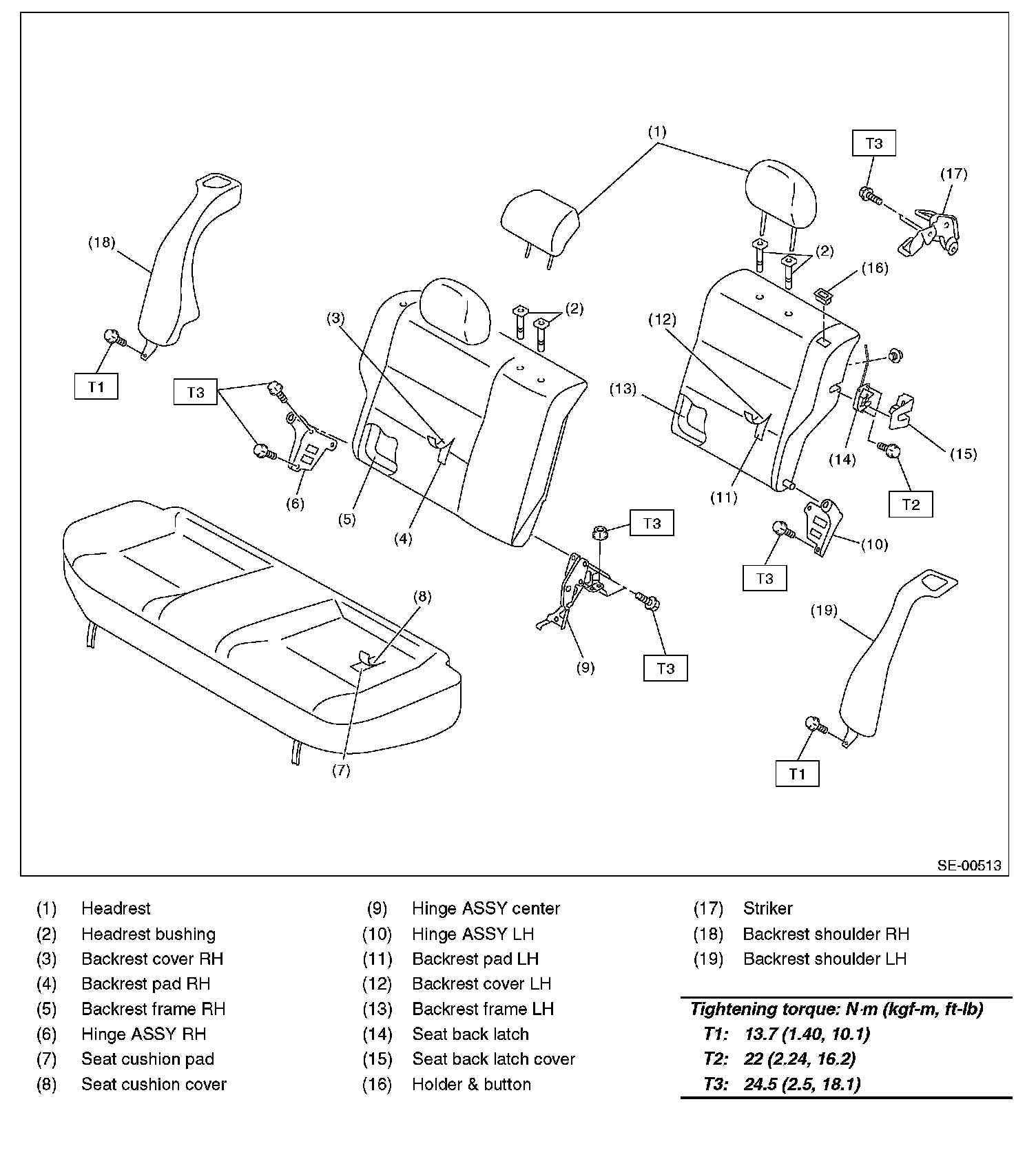 T2: 24.5 N.m (2.5 kgf-m, 18.1 ft-lb)