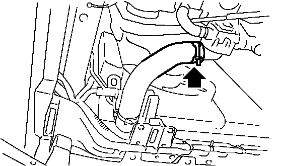 6. Disconnect the radiator outlet hose from thermostat cover.