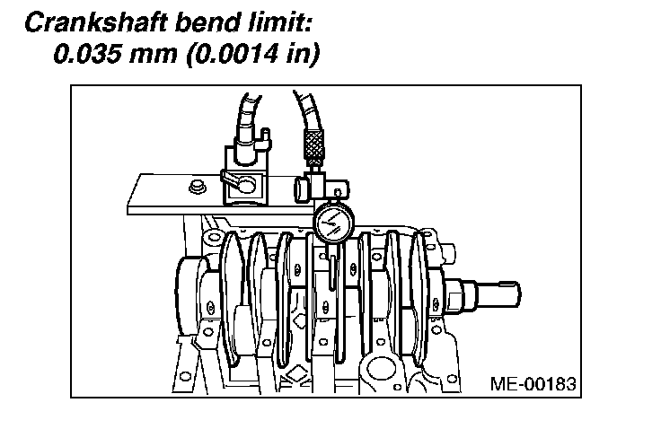 2. Measure the bend of crankshaft. If it exceeds the limit, repair or replace it.