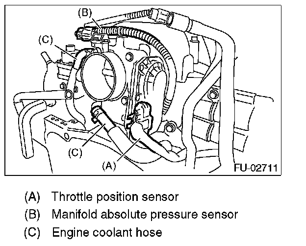 3. Disconnect the connectors from throttle position sensor and manifold absolute pressure sensor.