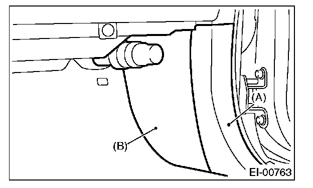 5. Remove the front inside scuff plate (A) and front pillar lower trim (B).