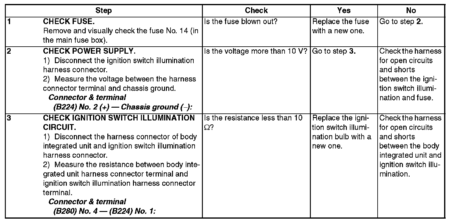 Check Ignition Switch Illumination