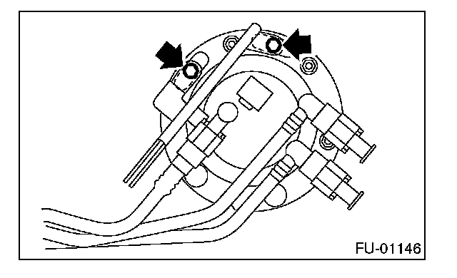 6. Remove the nuts and bolts which install the fuel sub level sensor on fuel tank.