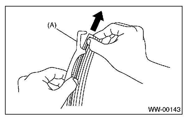 Pull the wiper rubber top slightly from the stopper (A) and pull out fully.