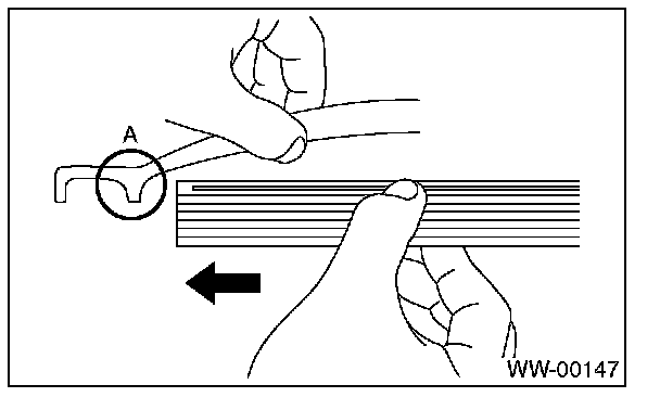 Pull side (A) of the wiper rubber stopper and remove the rubber from blade assembly.