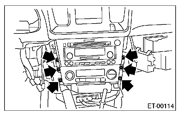 5. Remove the screws, and partially pull the audio out from center console.