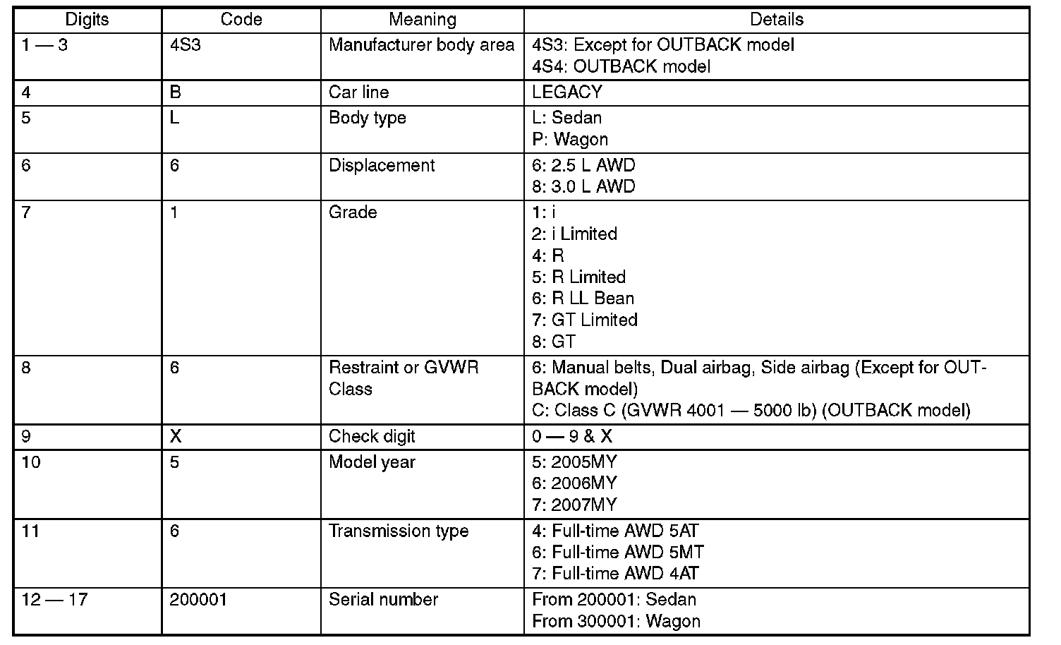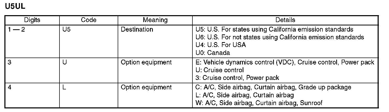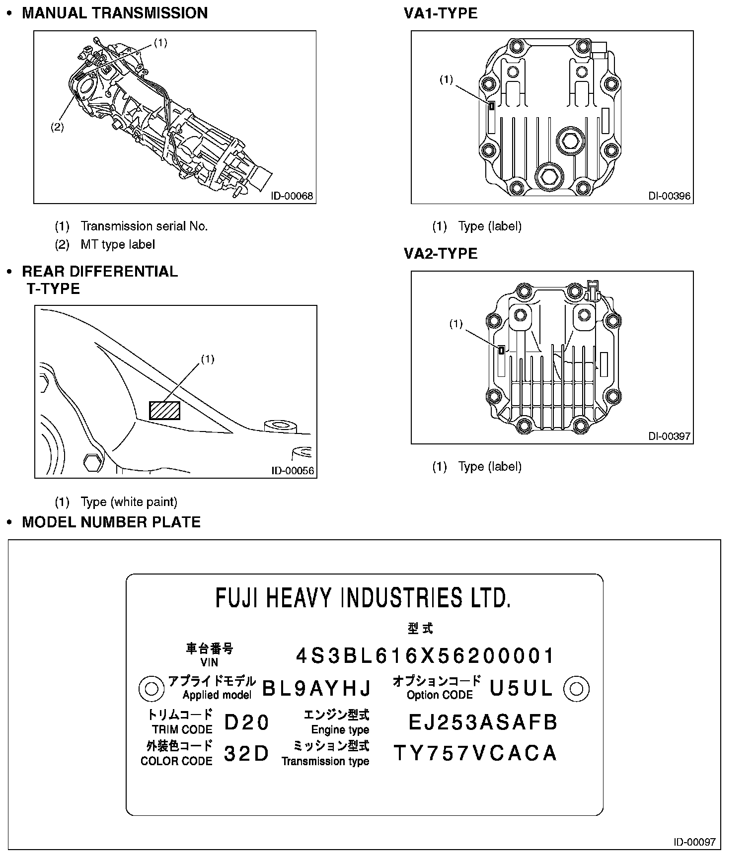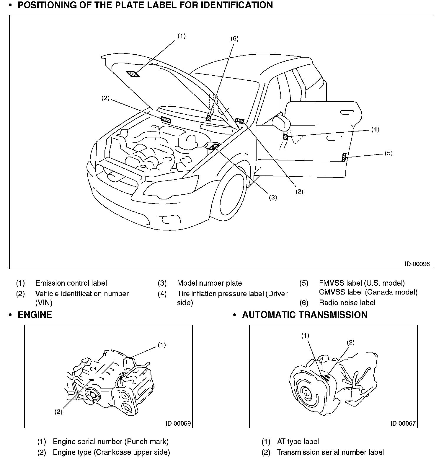 The model number plate indicates the type, V.I.N, applied model, option code, trim code, engine type, transmission type and the exterior color code. This information is helpful when placing orders for parts.