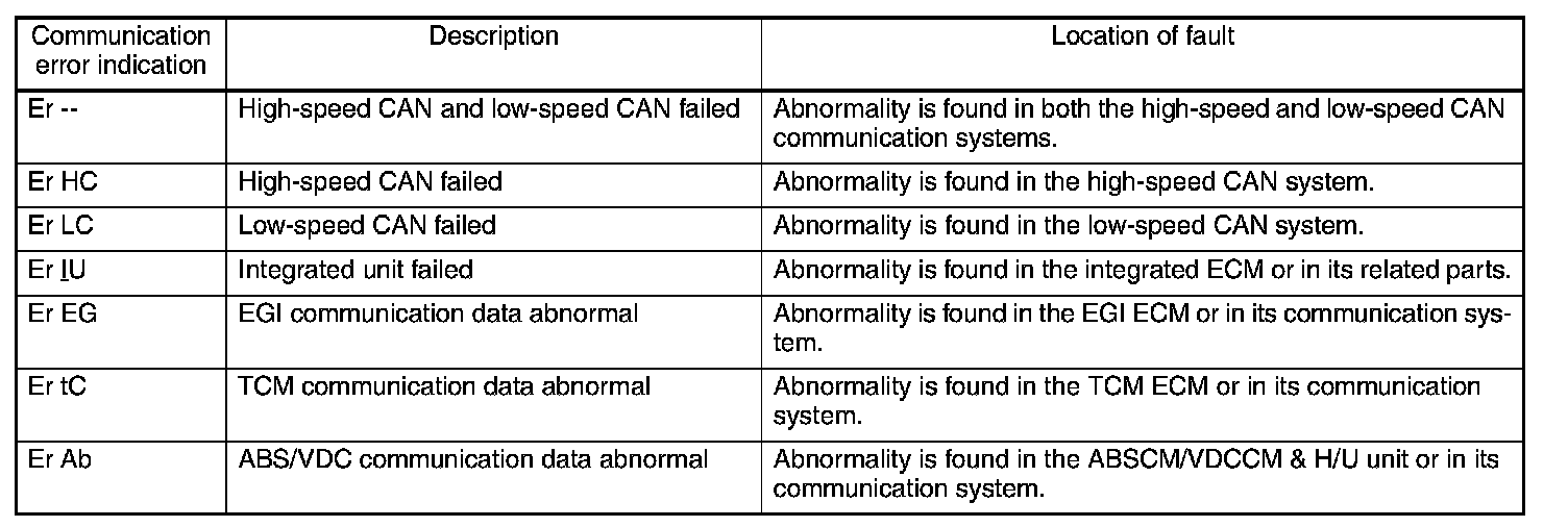 - If more than one diagnostic trouble code is stored, indication is given in the following order of priority: (1) High-speed CAN (2) Low-speed CAN (3) integrated unit (4) EGI (5) TCM (6) VDC