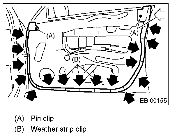 NOTE: If the weather strip clip is removed with excessive force, the weatherstrip may be damaged. Be sure to use clip remover to remove.
