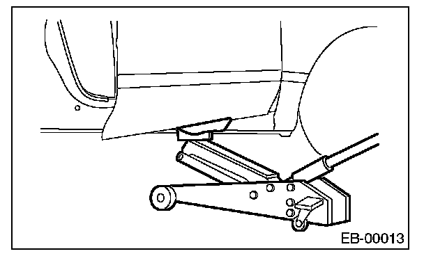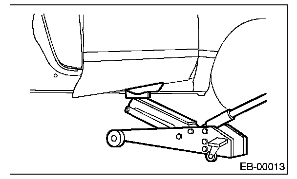 5. Put a wooden block on jack, and place the jack under the front door. Support the door with a jack to protect it from damage.