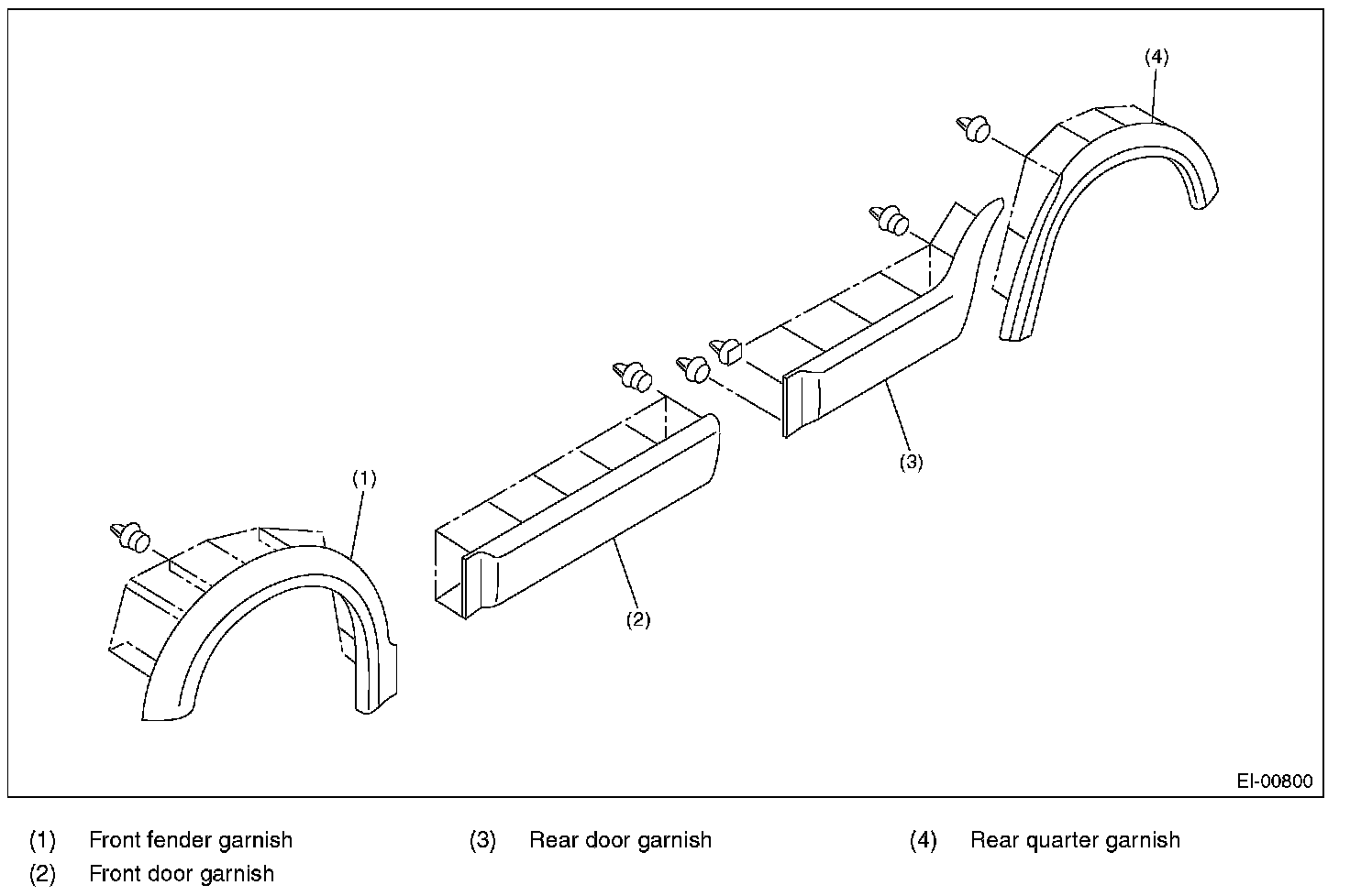 2. For removal of side garnish, refer to the removal procedure of "Side Protector".