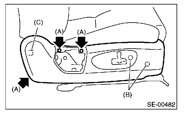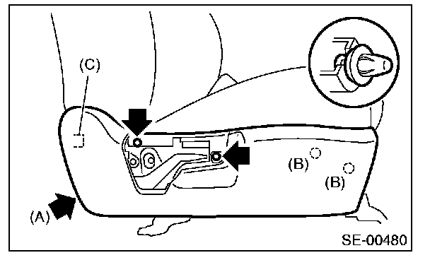 CAUTION: When the backrest cover is not installed securely, the side airbag module may not be deployed properly, therefore keep strictly to the following procedure.