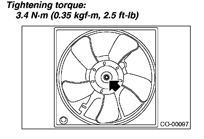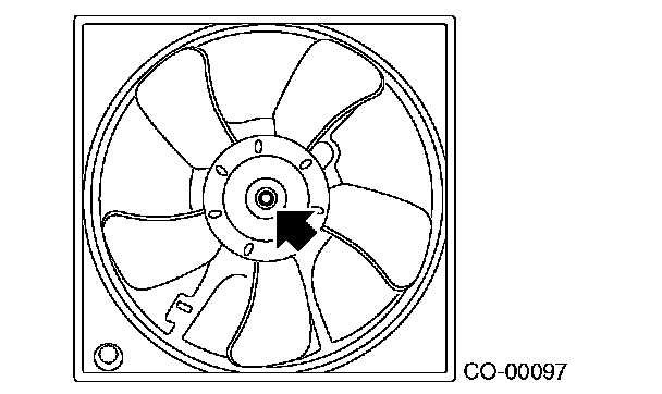 2. Remove the nut which holds fan to fan motor and shroud assembly.
