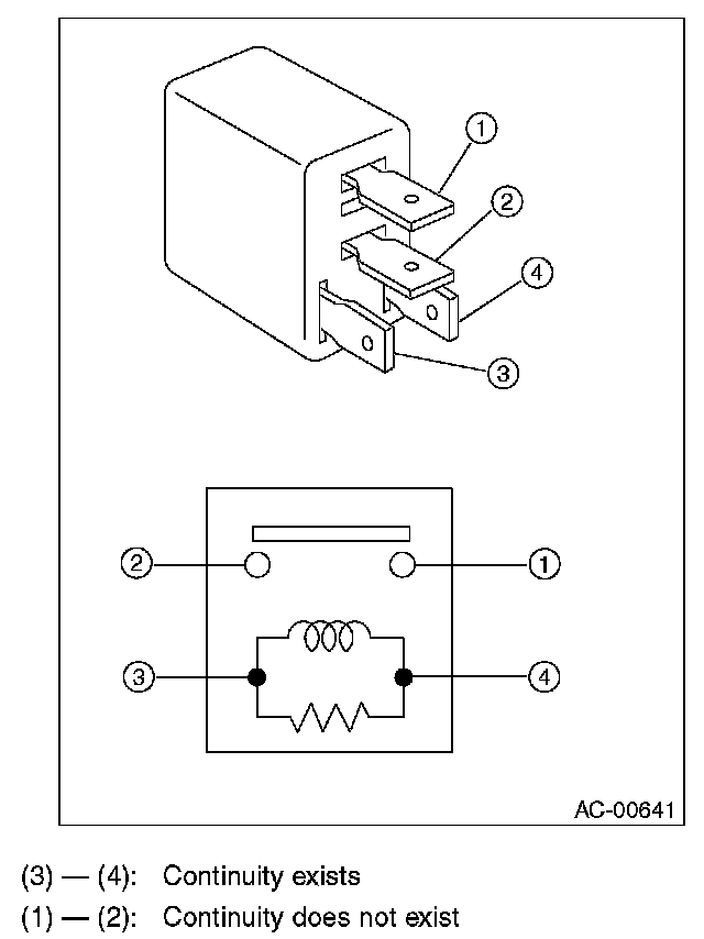 While applying battery voltage to the terminal between (3) and (4), check continuity between (1) and (2).