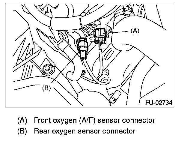 2. Remove the clip fastening the harness and disconnect the rear oxygen (A/F) sensor connector.