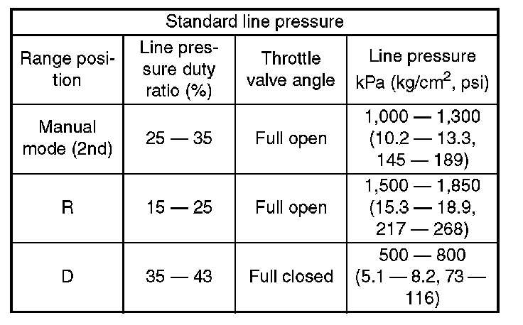 2. Measure the line pressure when the select lever is in R or 2nd of manual mode with engine under stall conditions.