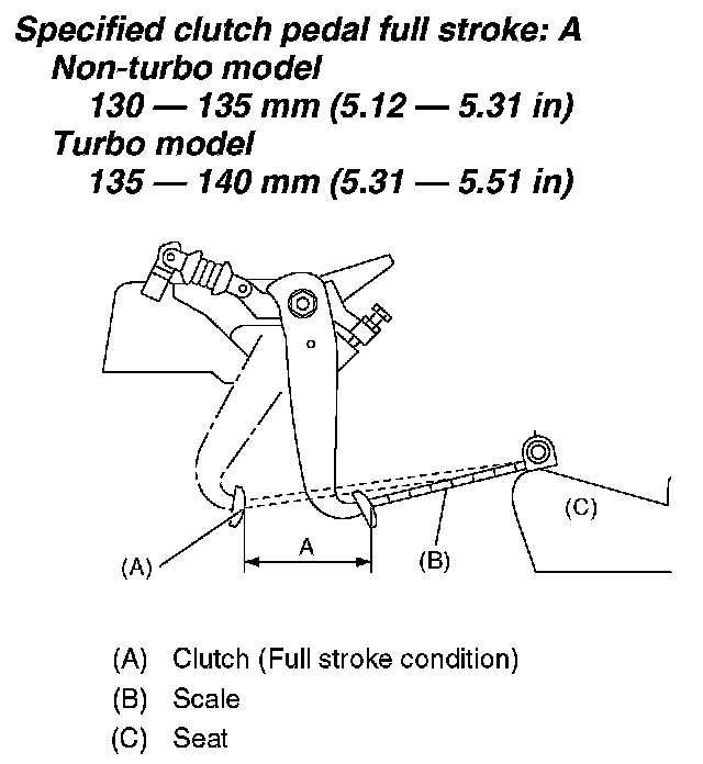 Specified clutch pedal full stroke: A