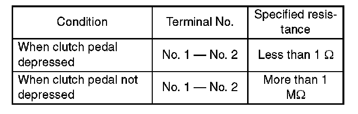3. Check the clutch switch continuity. If continuity is not as specified, replace the switch.