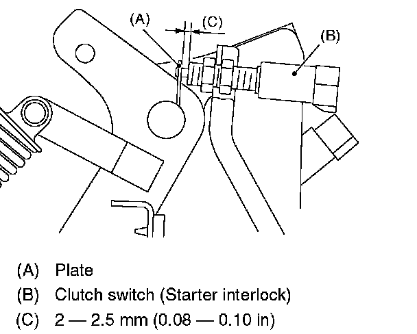 3. Adjust the clutch pedal plate and clutch switch so that the gap between them is 2 - 2.5 mm (0.08 - 0.10 inch)