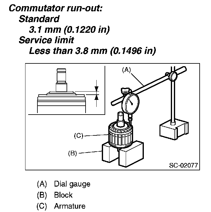 Check the commutator for run-out, and then replace if it exceeds the limit.