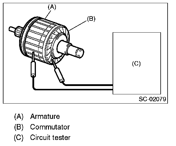 Using a circuit tester, touch one probe to the Armature and the other to commutator. There should be no continuity. If there is continuity, the armature is grounded.