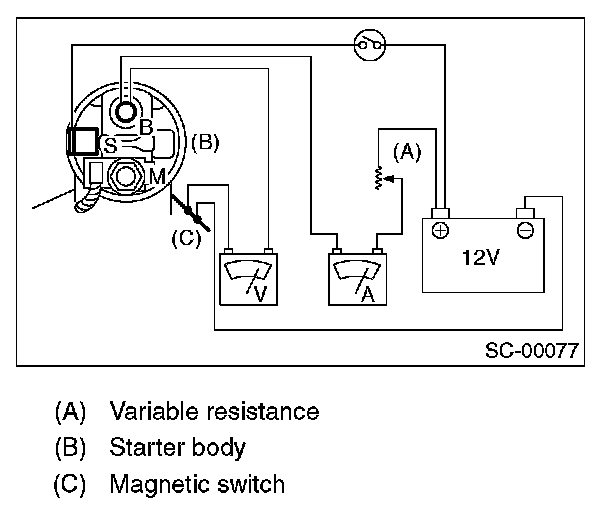Apply the specified braking torque to starter. The condition is satisfactory if the current draw and rotating speed are within specifications.