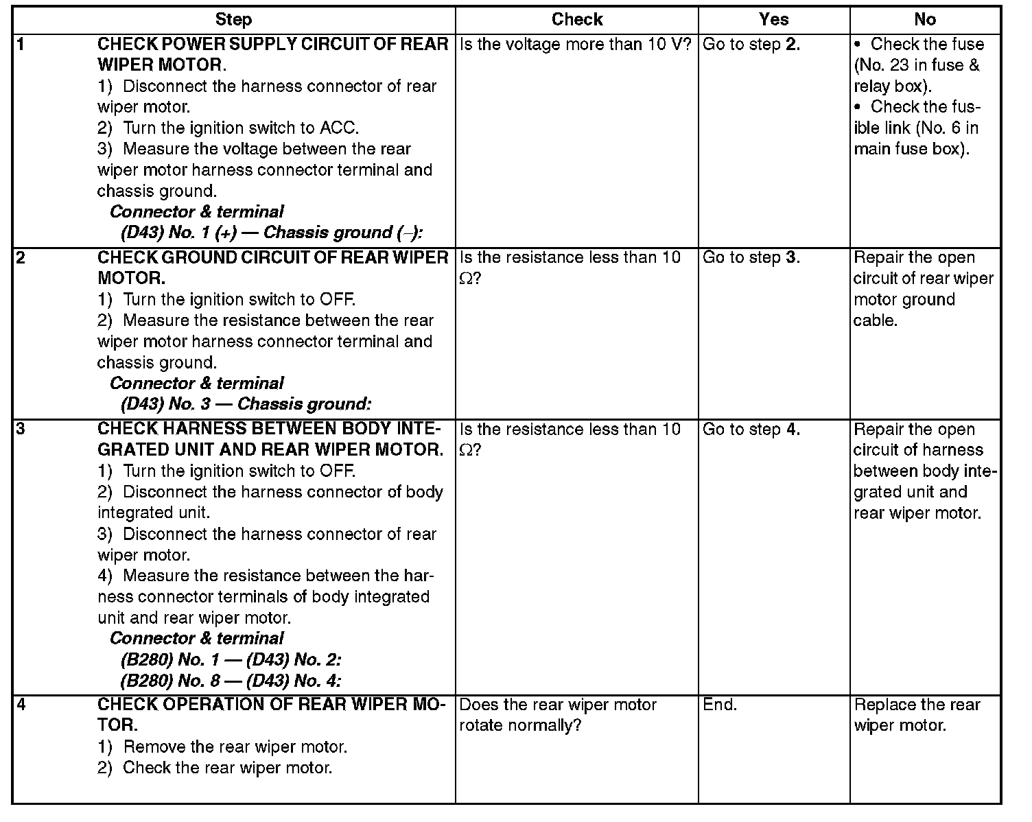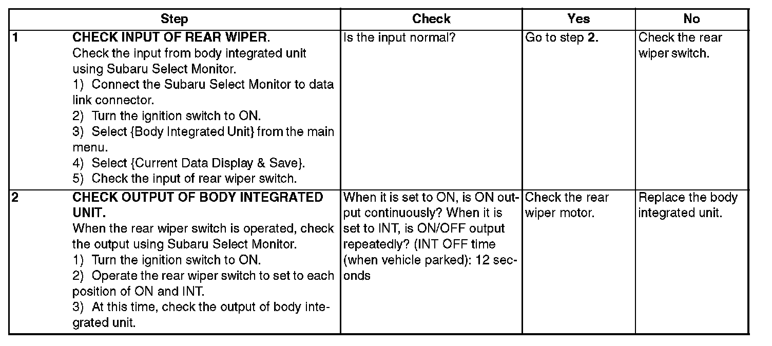 2. Rear wiper motor circuit check