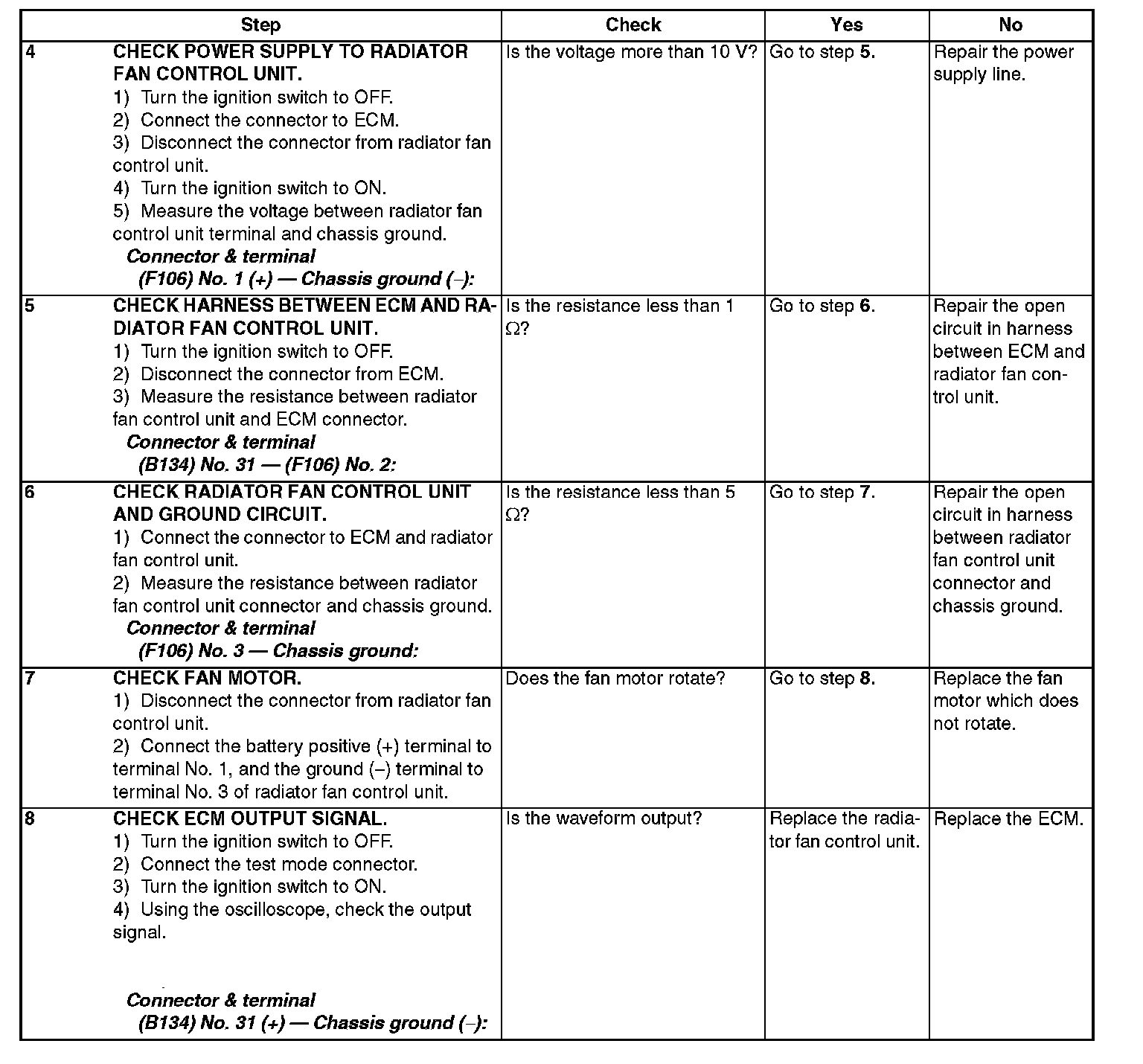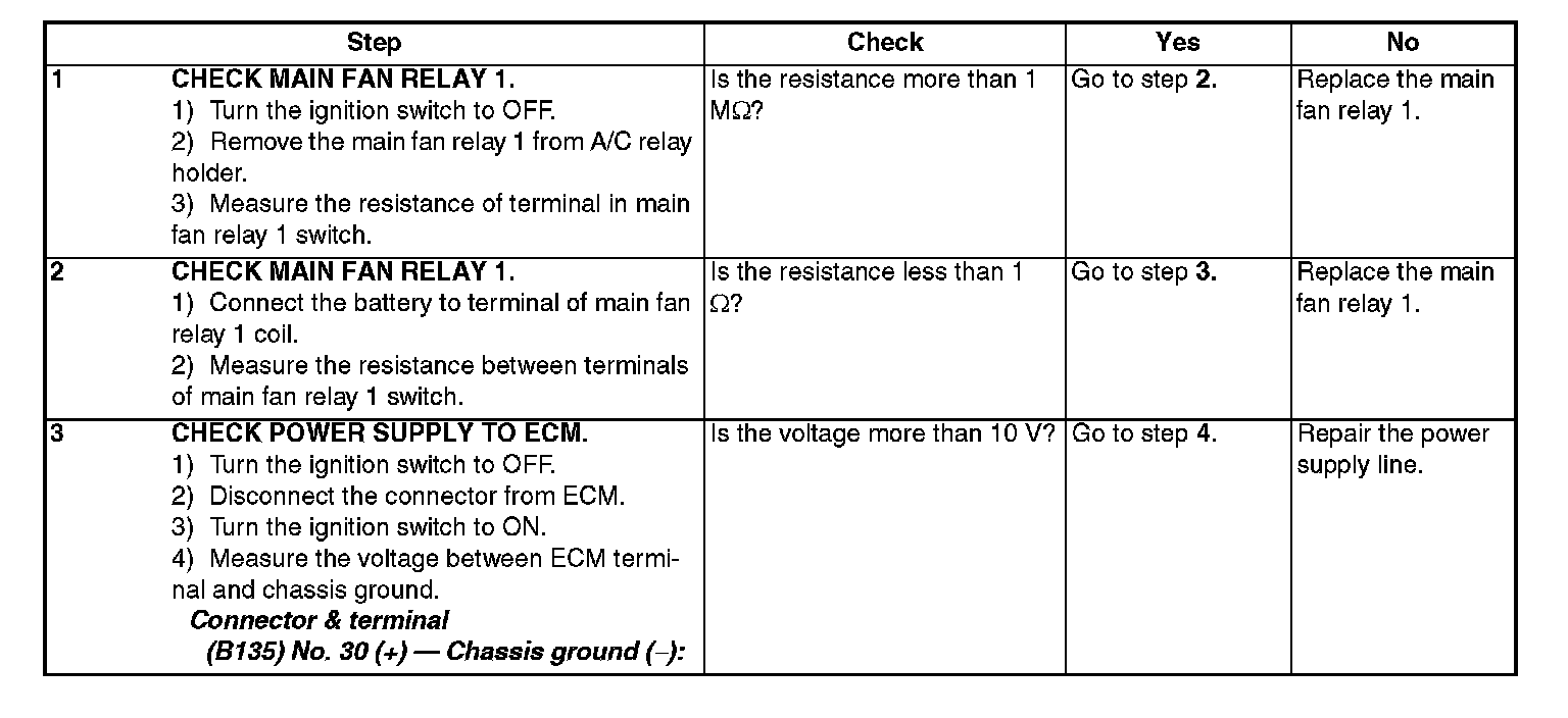 Radiator main fan and sub fan do not rotate under the above conditions.