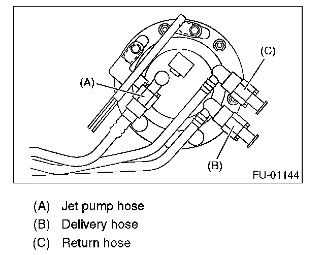 5. Disconnect the quick connector and then disconnect the fuel delivery hose, return hose and jet pump hose.