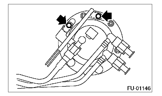 6. Remove the nuts and bolts which install the fuel sub level sensor on fuel tank.