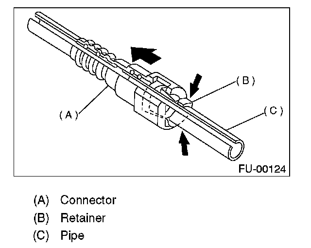 1. Set the new retainer (B) to connector (A).