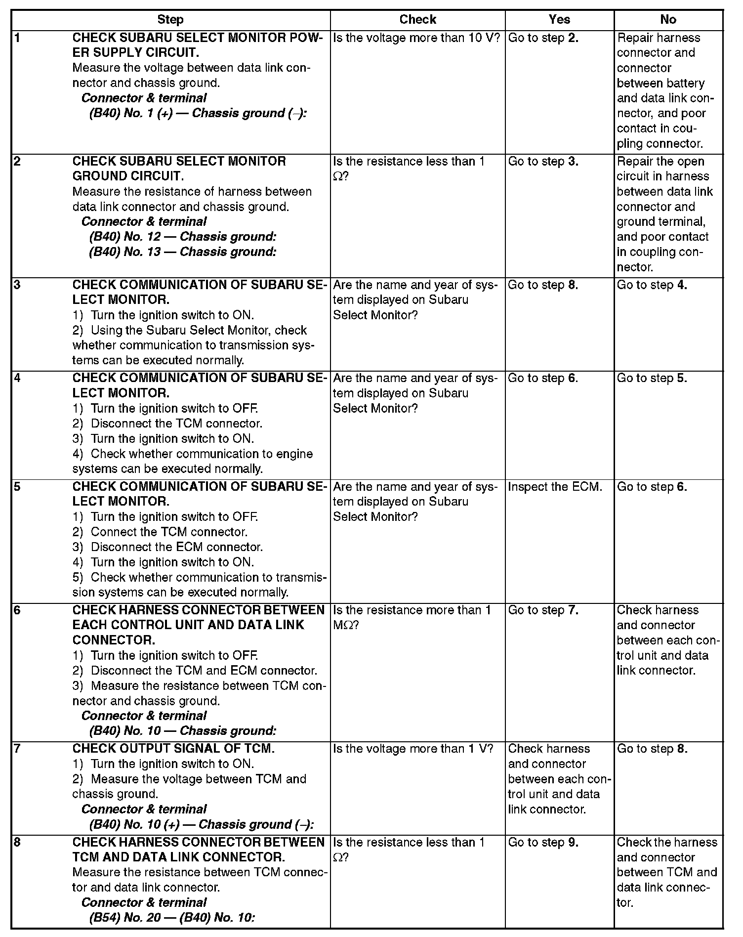 Diagnostic Procedure for Select Monitor Communication