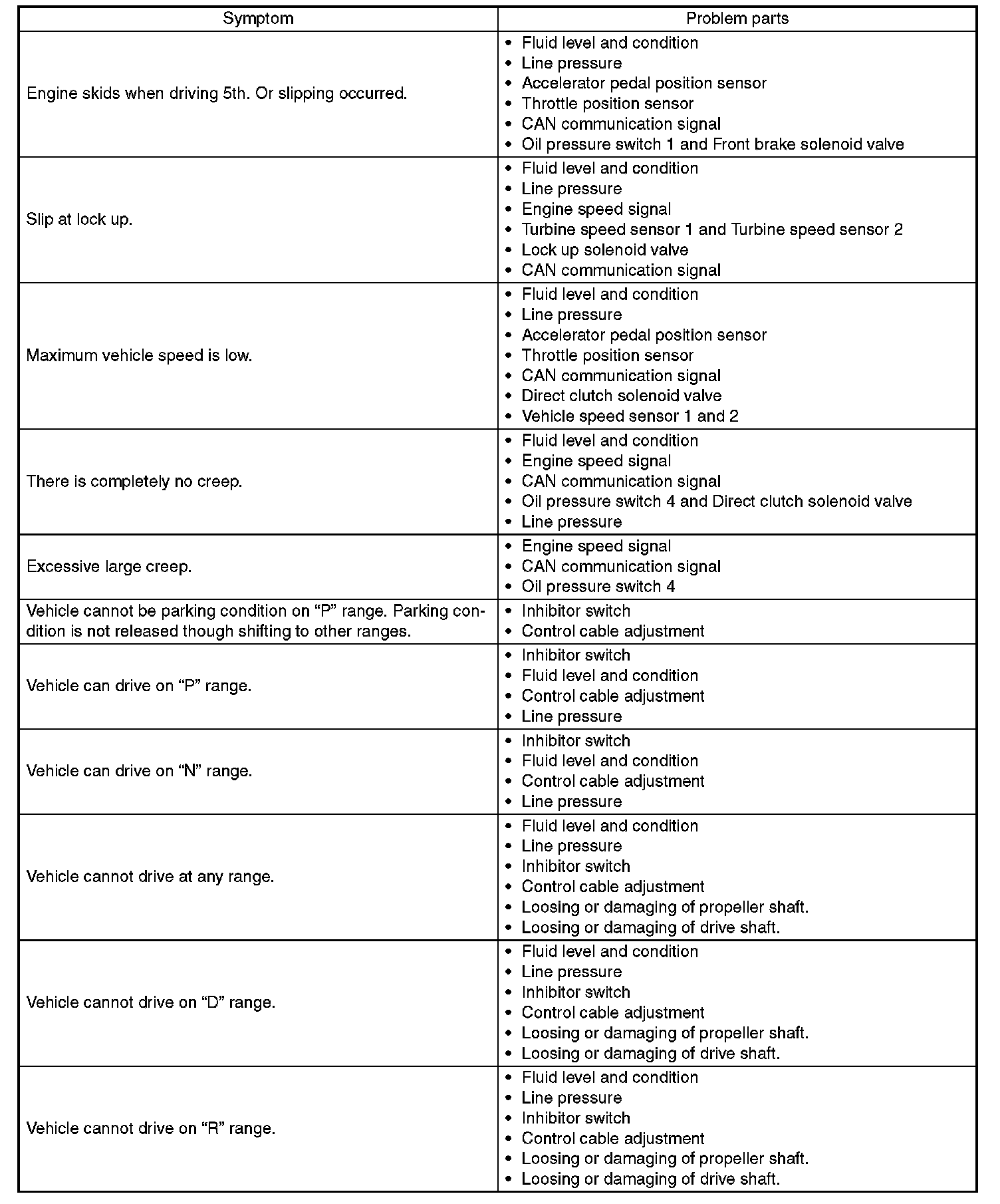 General Diagnostic Table