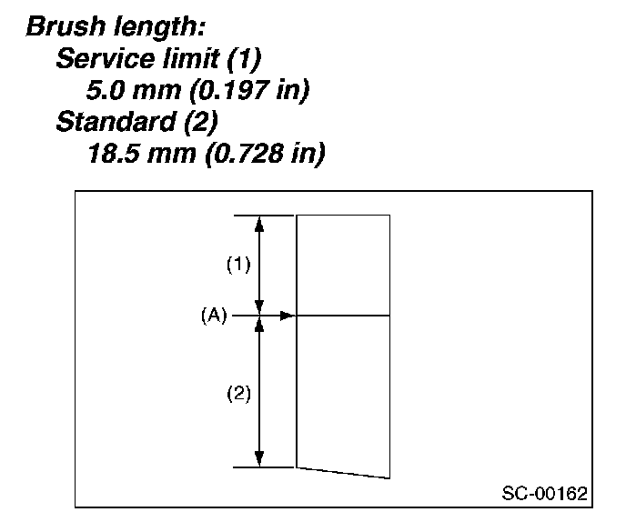 1. Measure the length of each brush. If wear exceeds the service limit, replace the brush. Each brush has the service limit mark (A) on it.