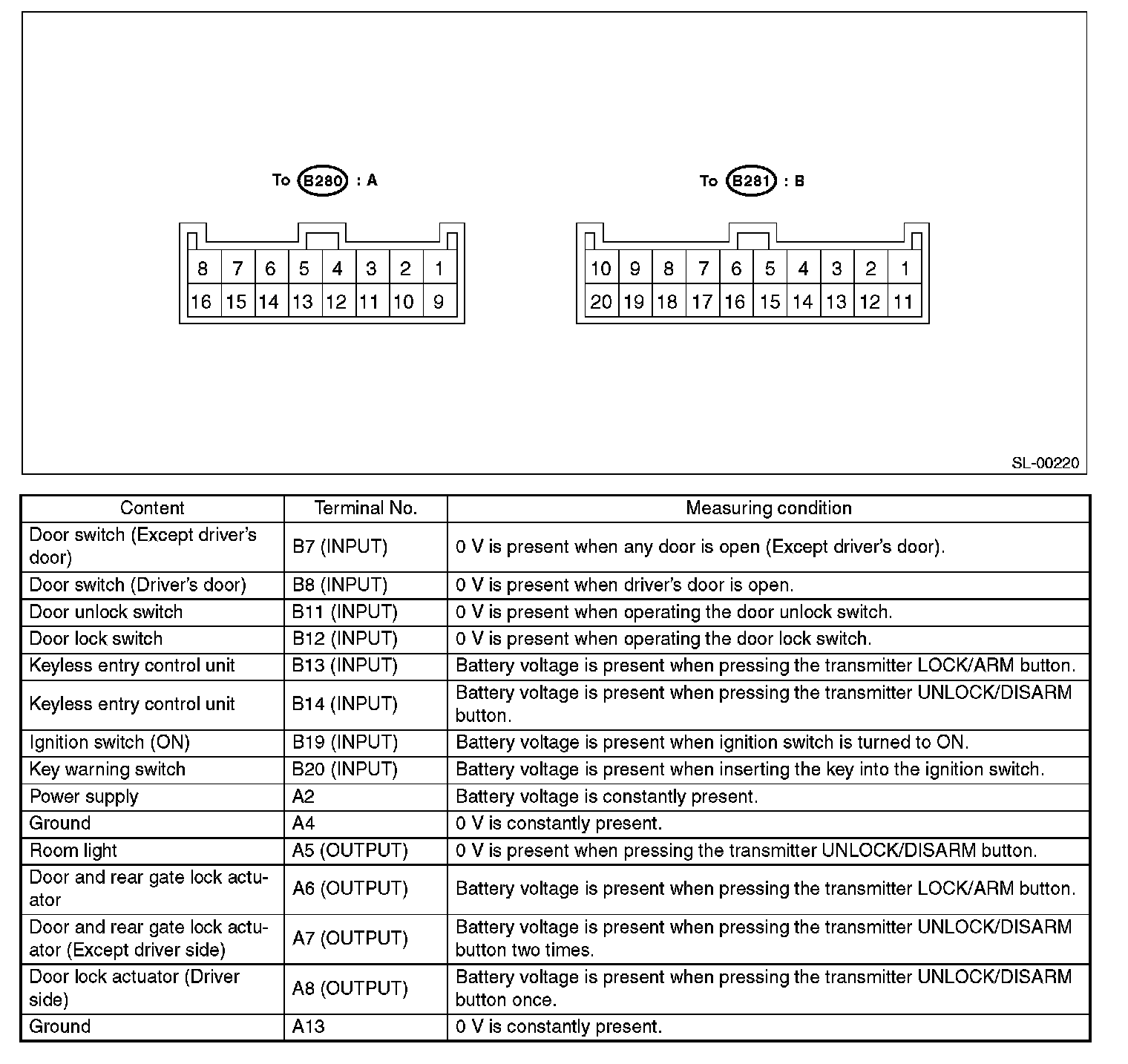 Pinout Values and Diagnostic Parameters