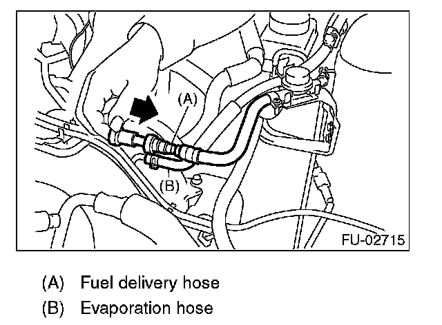 6. In engine compartment, detach the fuel delivery hoses and evaporation hose.