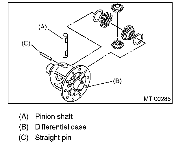 ^ There is damage, wear, or seizure of the differential bevel pinion, differential bevel gear, washer, pinion shaft, and straight pin.