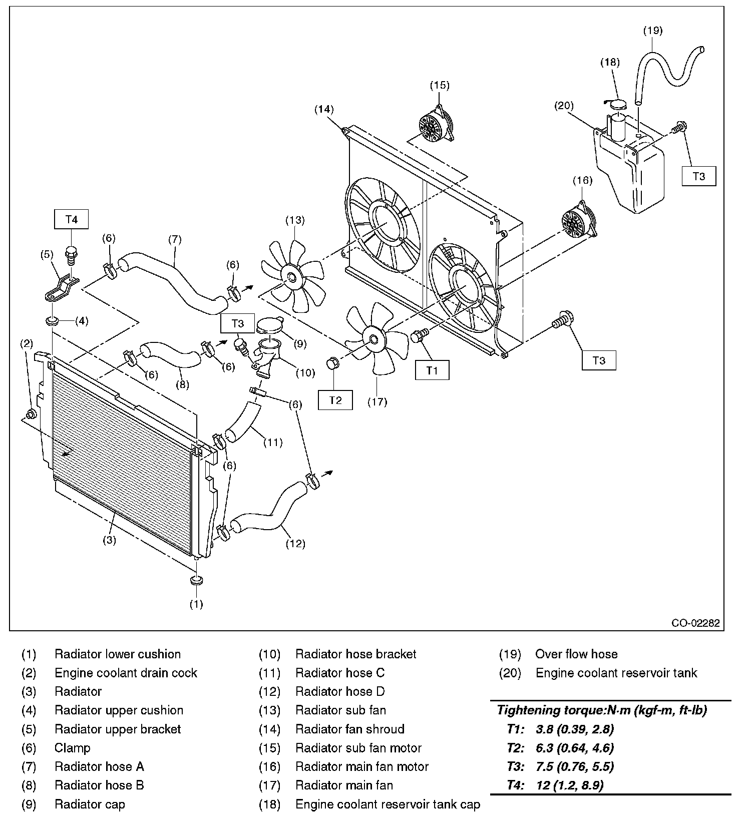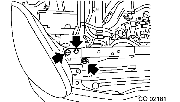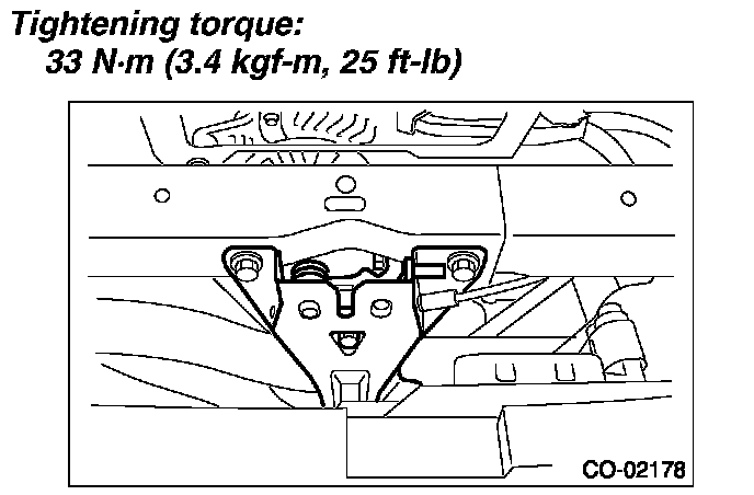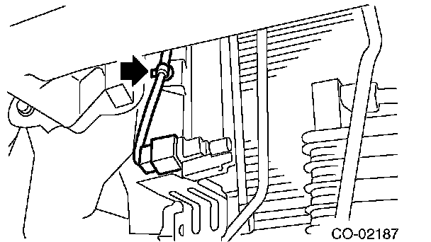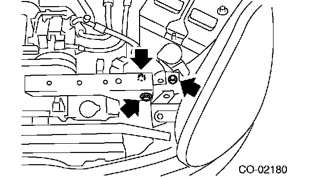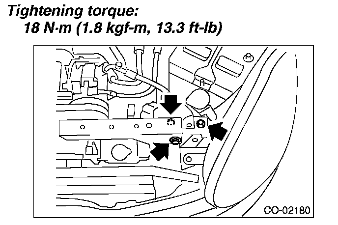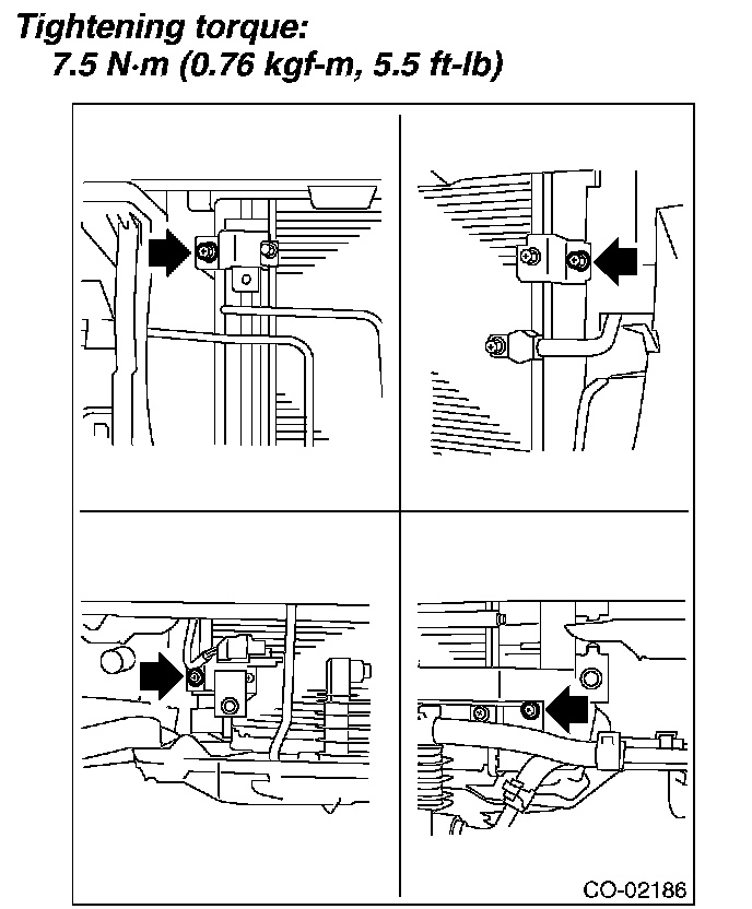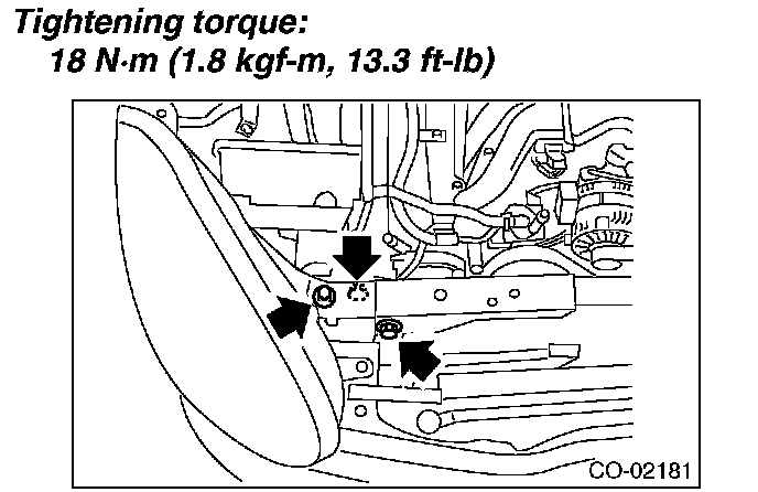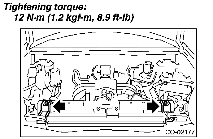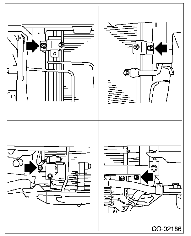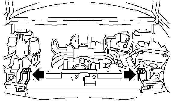 NOTE: Insert the pins on the lower side of radiator into the radiator lower cushions on the vehicle side.