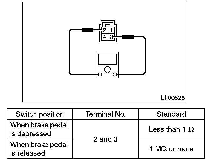 Measure the resistance between stop light switch terminals.