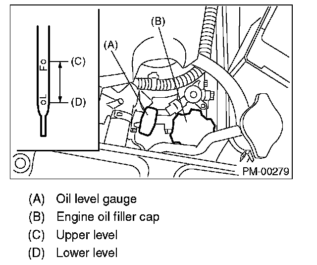 NOTE: To prevent overfilling of engine oil, do not add oil above "F" line when the engine is cold.