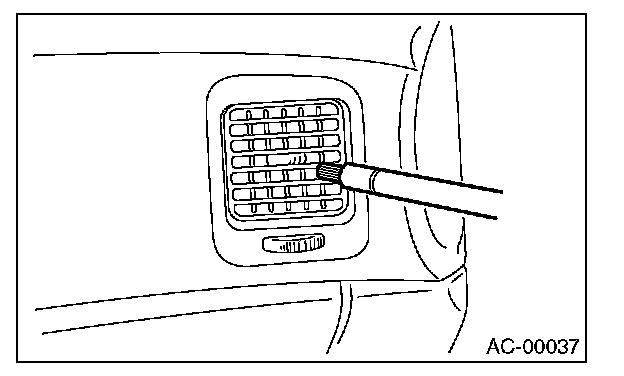 11. Turn the ignition key to the ON position, and run the blower at high speed for approx. 1 minute. Stop the blower to check the ventilation grill on the instrument panel. While moving the tester closer to the grill, run the blower for 1 or 2 seconds, then stop it. Check the grill at that point for at least 10 seconds.
