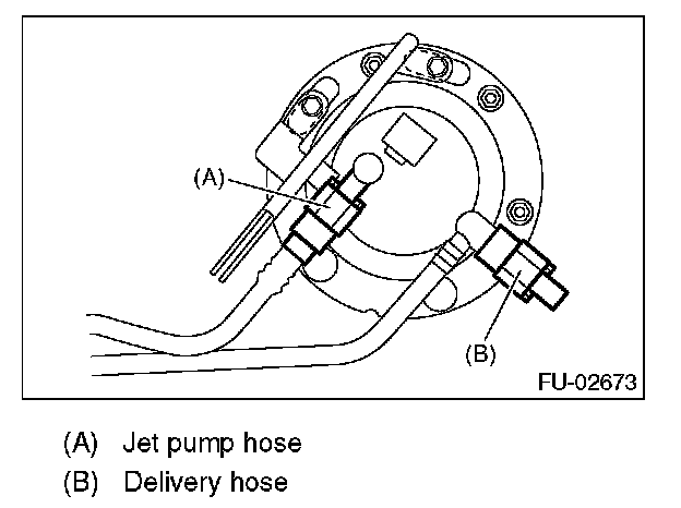 5. Disconnect the quick connector, and then disconnect the fuel delivery hose, return hose and jet pump hose.