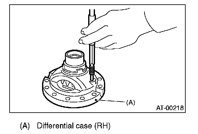 NOTE: Hold the differential case assembly by hand to avoid damaging the retainer mounting hole of the converter case.