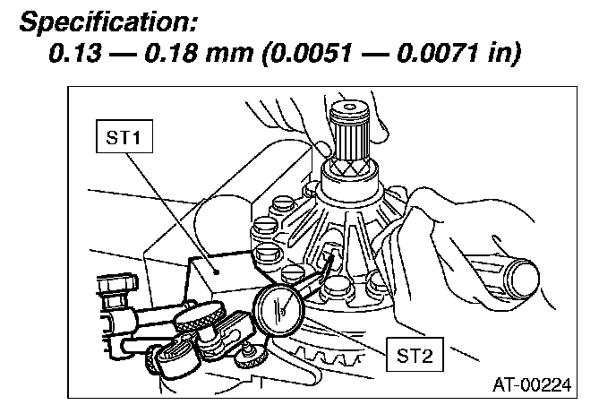 8. Turn the drive pinion several times using ST1, and check to see if the backlash is within the specification using ST2, ST3, ST4 and ST5.