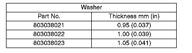 3. If the backlash is not within specification, select a washer from the table below.