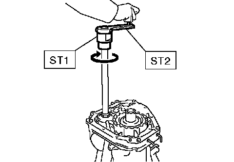 5. Rotate the drive pinion ten times or more using ST1 and ST2.