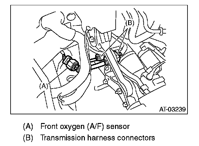 8. Disconnect the front oxygen (A/F) sensor and transmission harness connector.