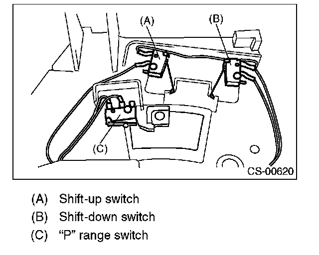 4. After completing installation, shift the select lever from the P range to the D range, then check whether or not the selection indicator in the combination meter and the select lever position matches. Also check whether the pointer and position mark matches, and what the operating force is.