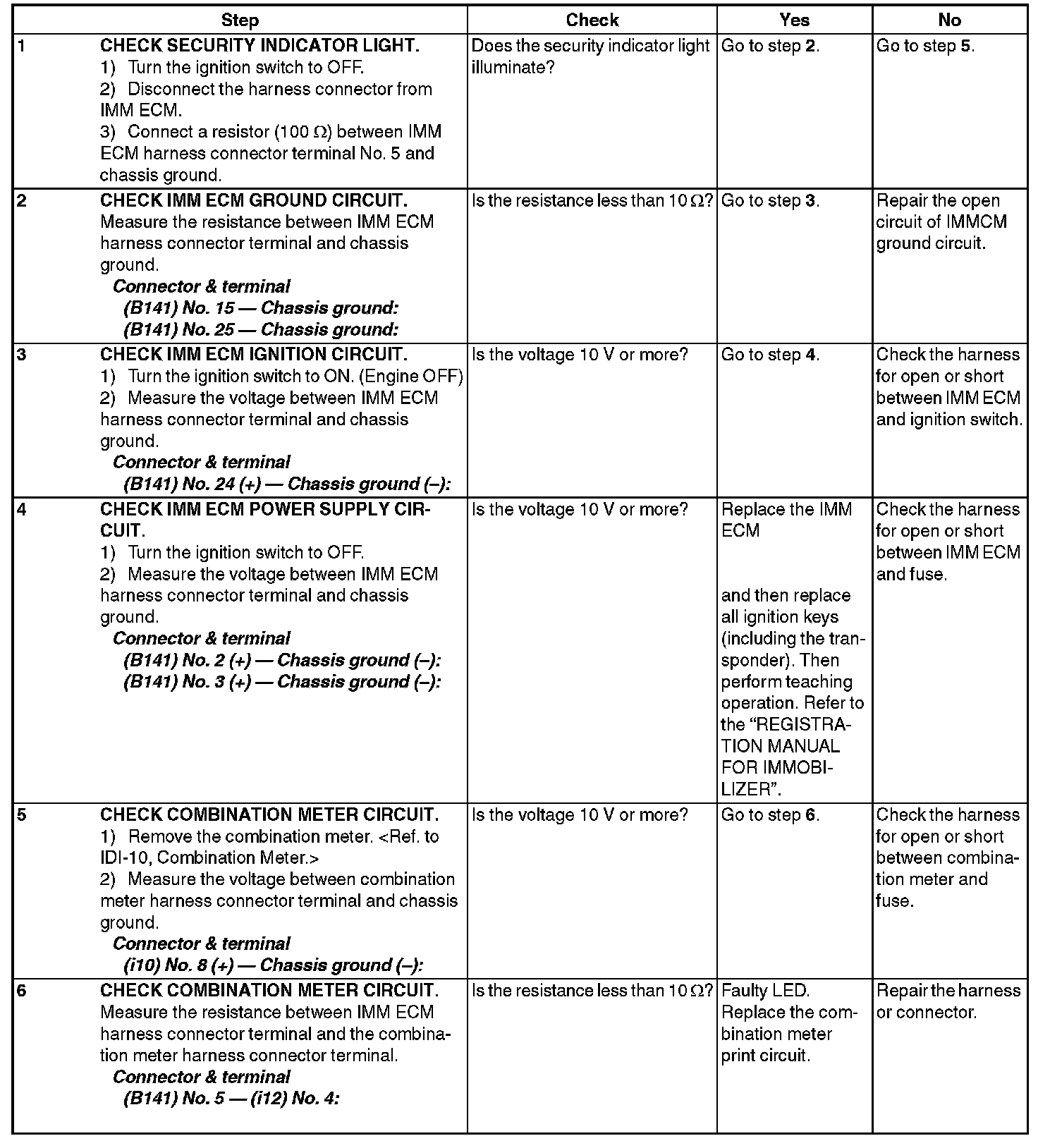 Diagnostics Chart For Security Indicator Light