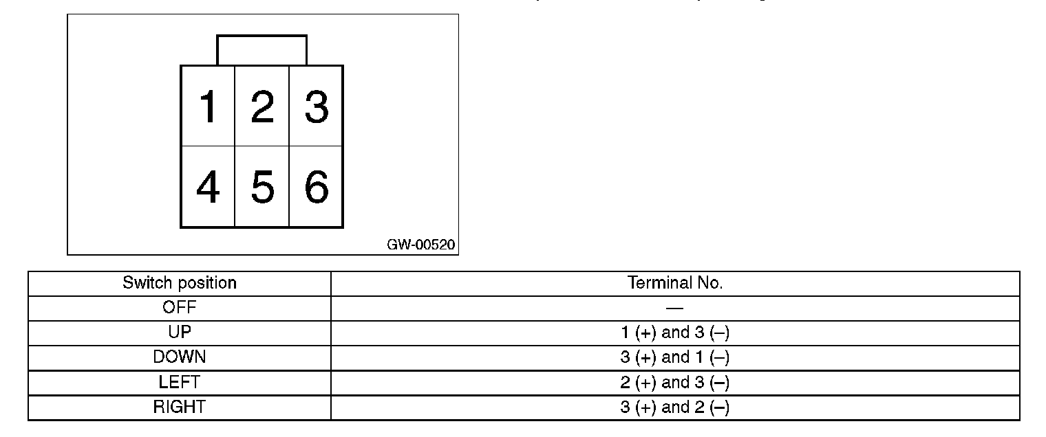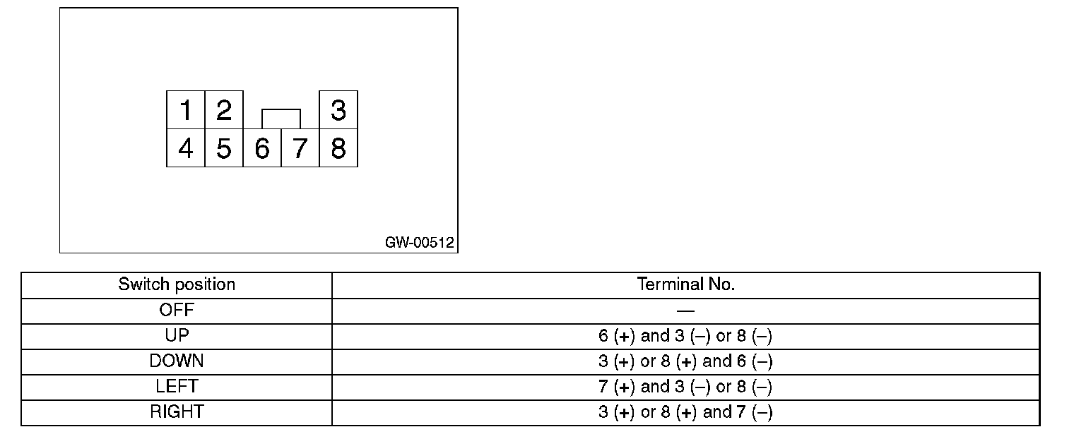 1. Check to ensure that the outer mirror moves properly when the battery voltage is applied to terminals.